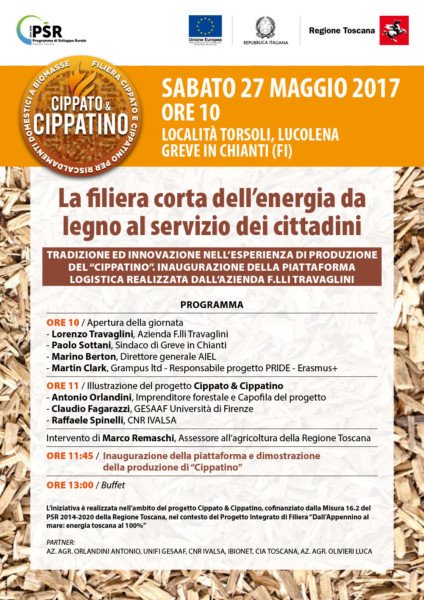 L’iniziativa è realizzata nell’ambito del progetto Cippato & Cippatino, cofinanziato dalla Misura 16.2 del PSR 2014-2020 della Regione Toscana, nel contesto del Progetto Integrato di Filiera “Dall’Appennino al mare: energia toscana al 100%”.