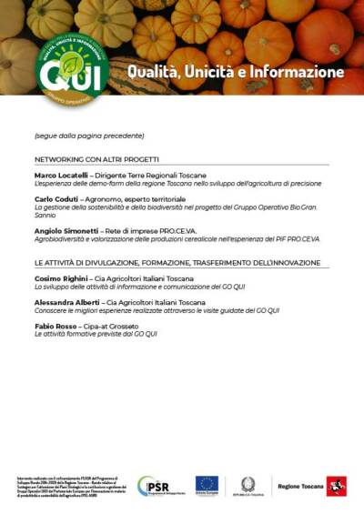 Durante l’incontro saranno presentati i risultati del GO Q.U.I.– Qualità, Unicità, Informazione, nato per favorire il trasferimento, l’elaborazione e l’utilizzo dei dati rilevati attraverso sensori e macchinari agricoli.