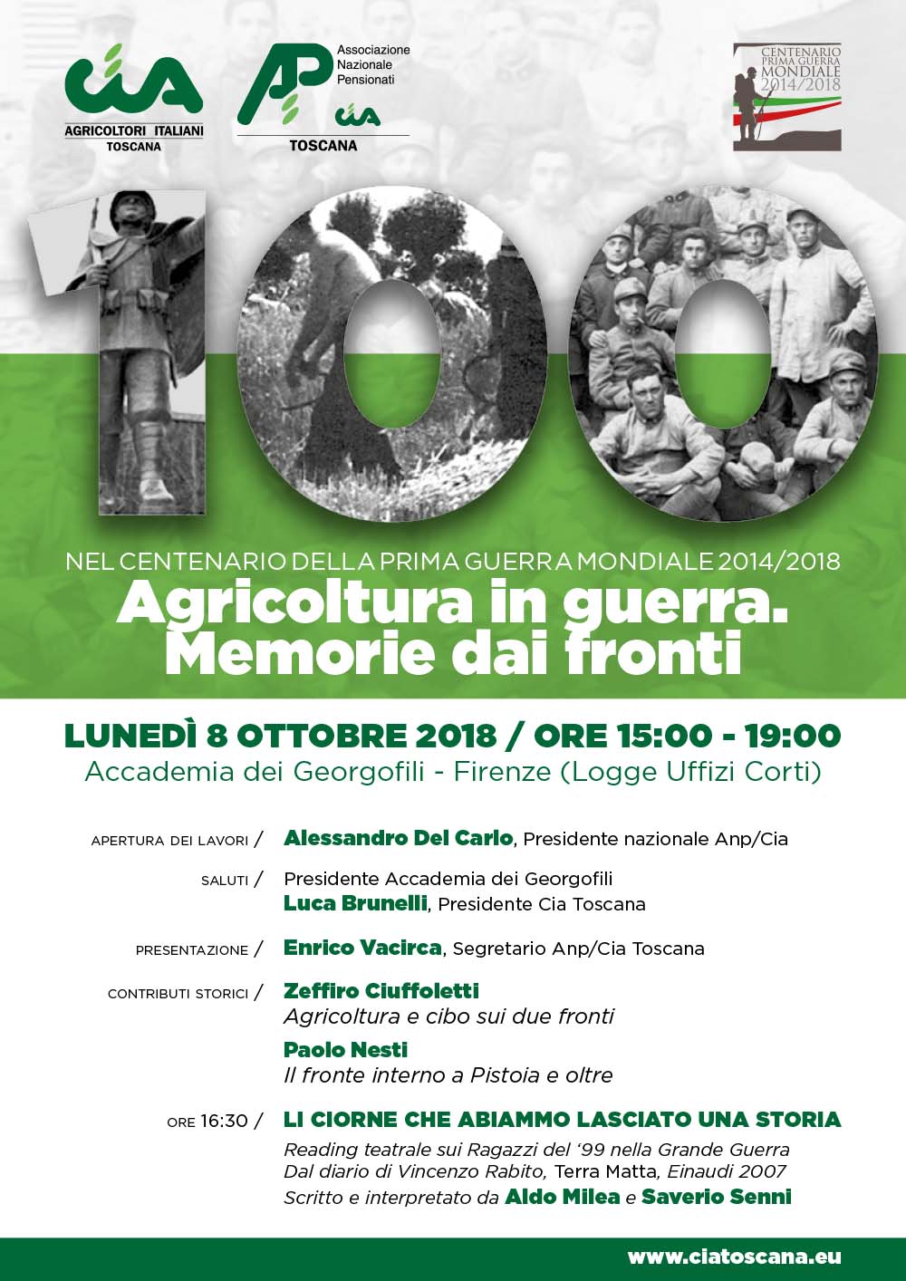 “Agricoltura in guerra. Memorie dai fronti” è il titolo dell’evento organizzato dall’Anp Cia Toscana lunedì 8 ottobre, dalle ore 15:00, a Firenze all’Accademia dei Georgofili (Logge Uffizi Corti).