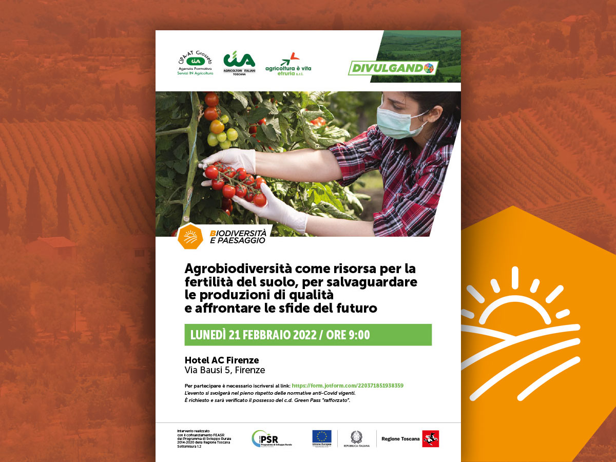 Appuntamento lunedì 21 febbraio 2022 alle ore 9:00 all’Hotel AC Firenze (Via Bausi 5, Firenze) per il convegno “Agrobiodiversità come risorsa per la fertilità del suolo, per salvaguardare le produzioni di qualità e affrontare le sfide del futuro”.