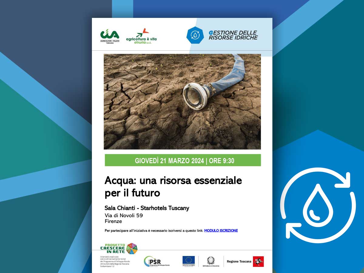 Appuntamento giovedì 21 marzo 2024 alle ore 9:30 nella Sala Chianti – Starhotels Tuscany (Via di Novoli 59, Firenze) con il convegno dal titolo “Acqua: una risorsa essenziale per il futuro”.