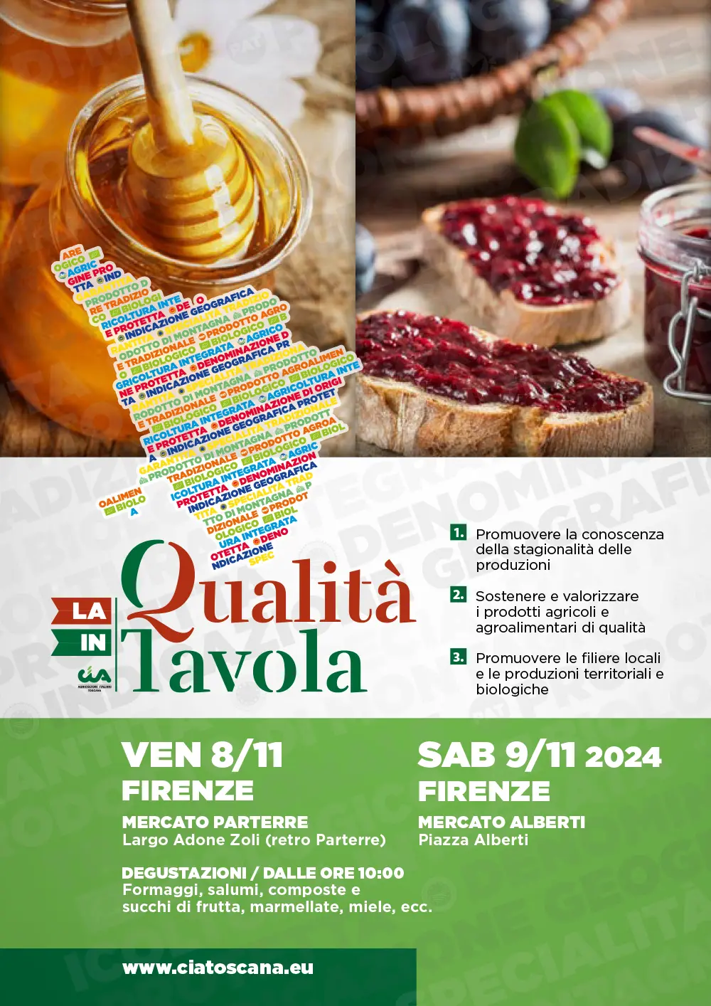 La Qualità in Tavola, progetto di Cia Agricoltori Italiani della Toscana, vuole promuovere la conoscenza della stagionalità delle produzioni; sostenere e valorizzare i prodotti agricoli e agroalimentari di qualità; promuovere le filiere locali e le produzioni territoriali e biologiche.