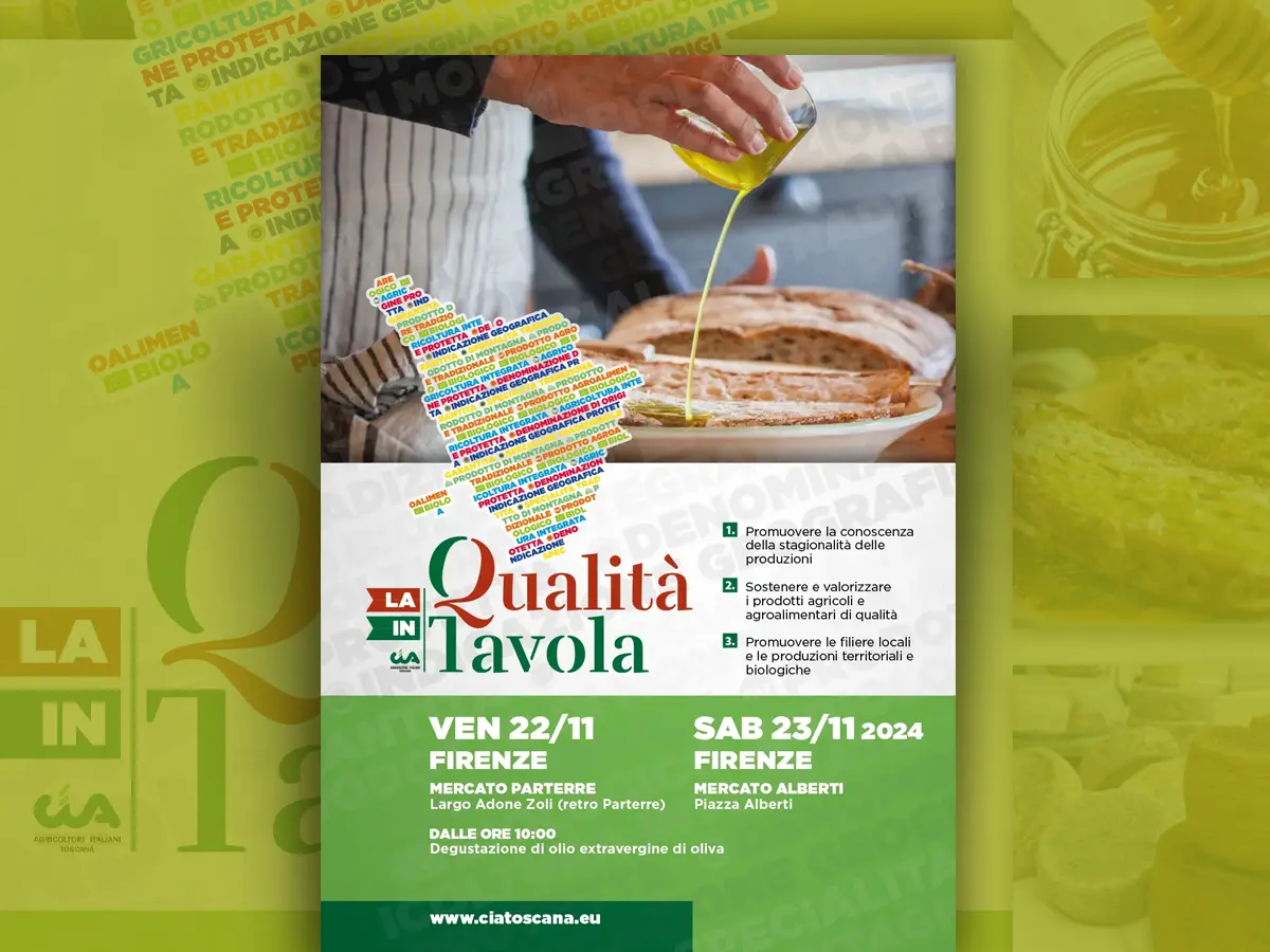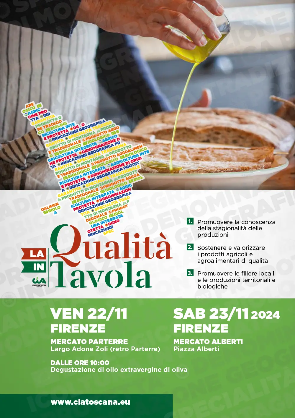 La Qualità in Tavola, progetto di Cia Agricoltori Italiani della Toscana, vuole promuovere la conoscenza della stagionalità delle produzioni; sostenere e valorizzare i prodotti agricoli e agroalimentari di qualità; promuovere le filiere locali e le produzioni territoriali e biologiche.