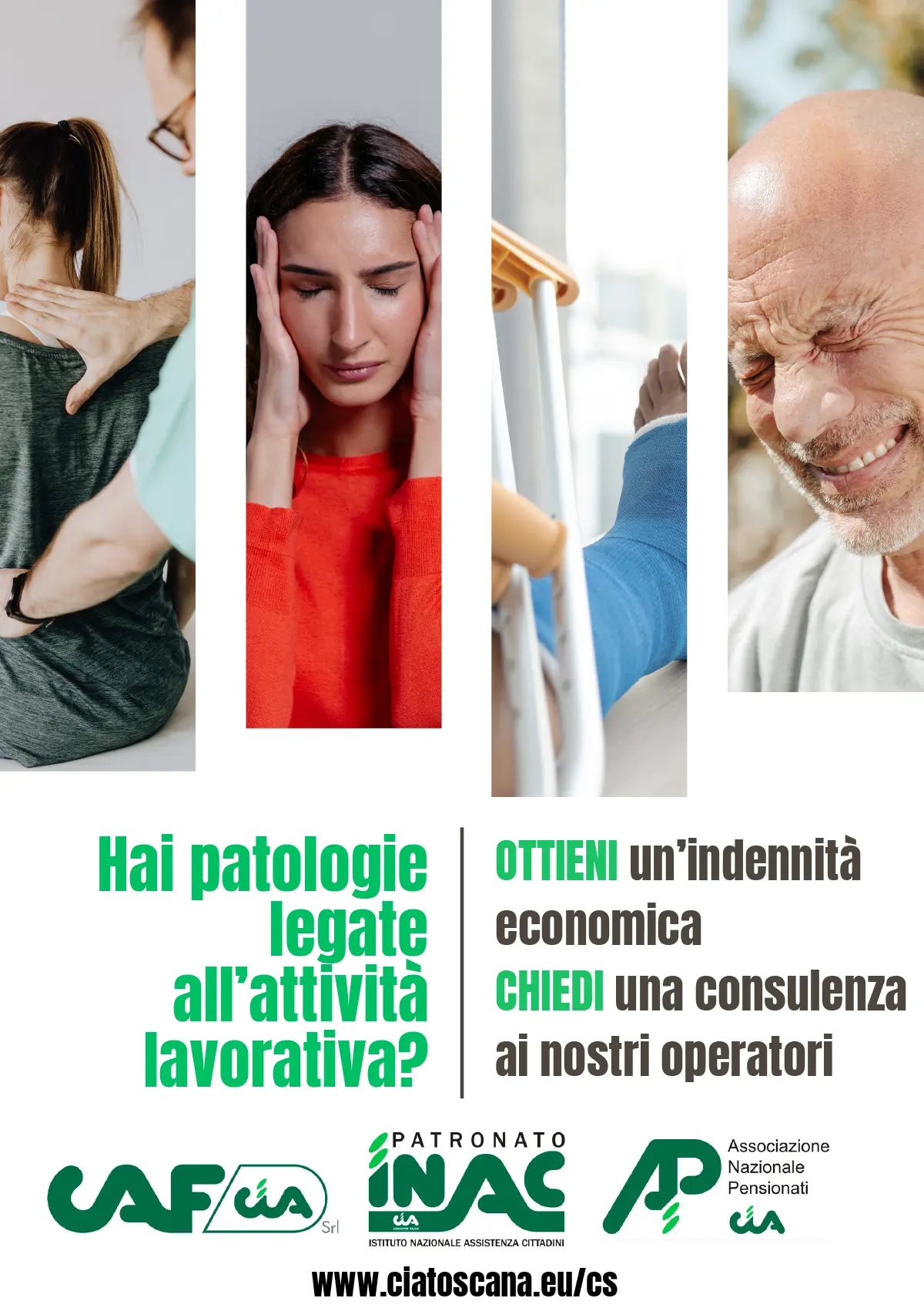 Per tutte le pratiche necessarie e per ricevere assistenza medico-legale gratuita, vi ricordiamo che gli uffici del PATRONATO INAC sono pronto ad aiutarvi. I nostri operatori sono a vostra disposizione.