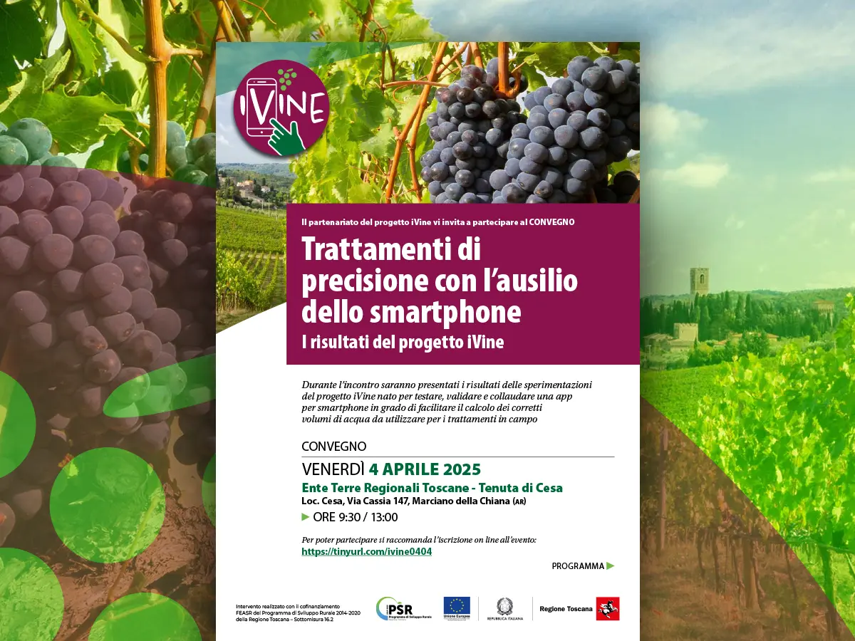 Il partenariato del progetto iVine vi invita a partecipare al convegno dal titolo “Trattamenti di precisione con l’ausilio dello smartphone. I risultati del progetto iVine”.
