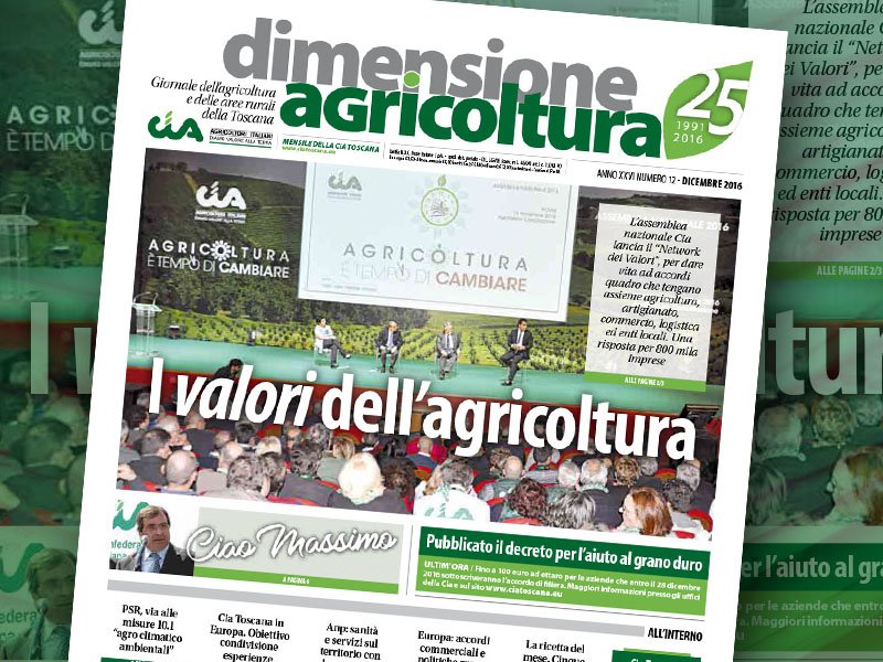 - Buon compleanno Dimensione Agricoltura. Il 16 dicembre a Firenze (Palazzo Ricasoli, via delle Mantellate 2) l’iniziativa per i 25 anni del giornale. 25 anni di informazione al servizio della Toscana.